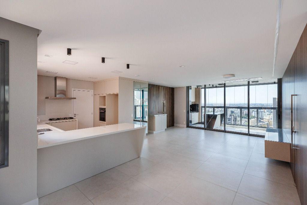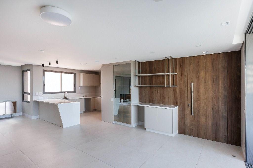 Elaborado no conceito open space você terá estar e jantar integrados com a cozinha, e mais: 3 suítes; sacada gourmet; lavabo; área de serviço e 3 vagas de garagem (1 solta + 1 dupla).