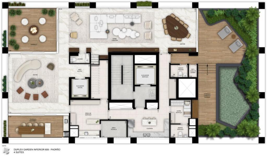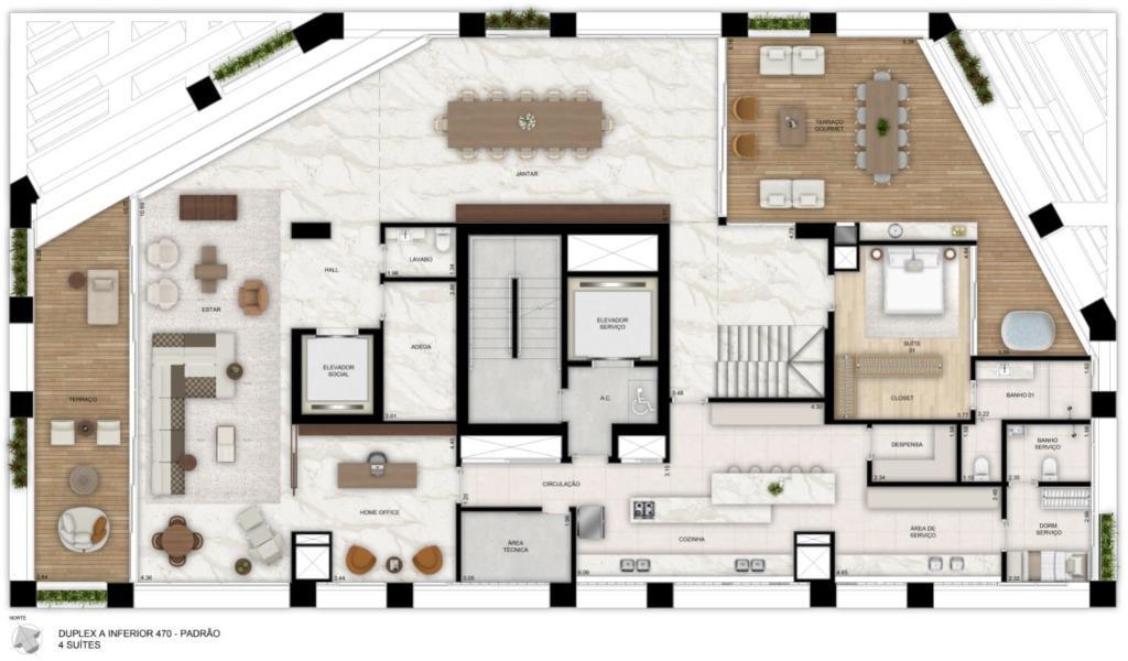 No AGE360, cada detalhe foi cuidadosamente pensado para proporcionar uma experiência de moradia única e incomparável. Localizado em uma das áreas mais cobiçadas de Curitiba, o Ecoville, este empreendimento de luxo oferece vistas panorâmicas de 360º que capturam a grandiosidade da cidade e seus arredores, criando uma verdadeira conexão com o entorno natural. Com apenas uma unidade por andar, você garante o máximo de privacidade e exclusividade, além de contar com amplos 3978,21m² de terreno e uma torre imponente de 28 andares. Cada apartamento foi projetado para integrar um design moderno e sofisticado com o conforto que você merece, oferecendo ambientes amplos, fluídos e iluminados, que permitem que a luz natural invada cada canto do seu lar. A planta do apartamento é um verdadeiro espetáculo: com 4 suítes, incluindo uma master com closet, hidro e terraço exclusivo, o projeto prioriza o seu bem-estar. O home theater, a sala de estar e jantar integradas e a cozinha gourmet com ilha central e churrasqueira a carvão transformam o seu dia a dia em momentos de prazer e funcionalidade. Os dois terraços adicionam charme e versatilidade ao imóvel, tornando cada espaço ainda mais agradável. O condomínio também oferece uma gama de comodidades de alto nível. Desfrute de áreas comuns como uma piscina coberta com vista 360º da cidade, um spa completo, uma quadra de beach tênis, um salão de beleza e até mesmo uma horta orgânica para que você possa colher o melhor da natureza. Para sua comodidade e segurança, o empreendimento oferece um concierge dedicado e 1 vaga para carro elétrico por unidade. * Valores e disponibilidade sujeitos a alteração sem aviso prévio! * As fotos apresentadas são meramente ilustrativas e não incluem móveis ou itens decorativos.