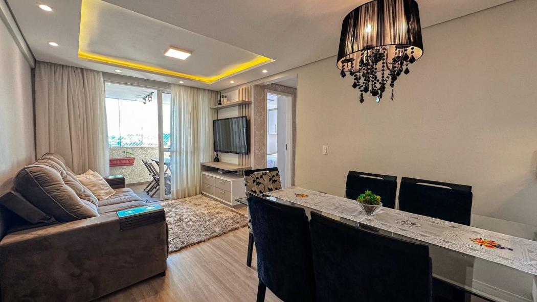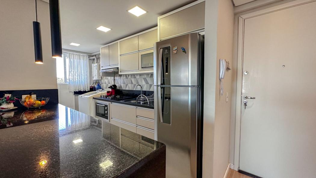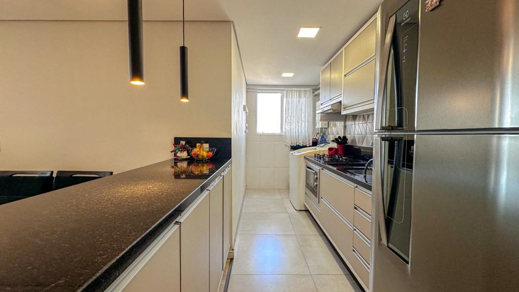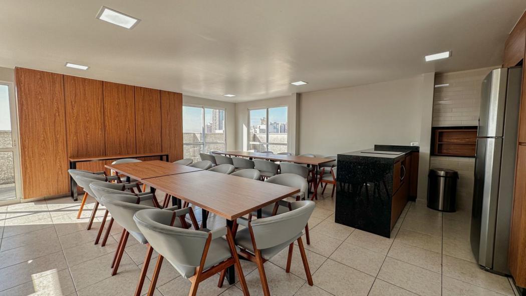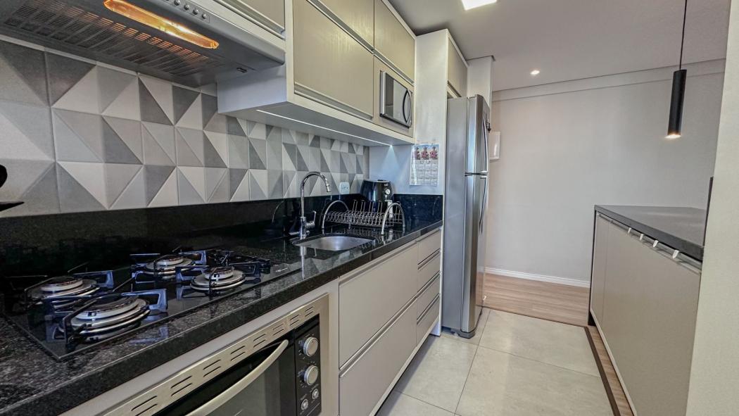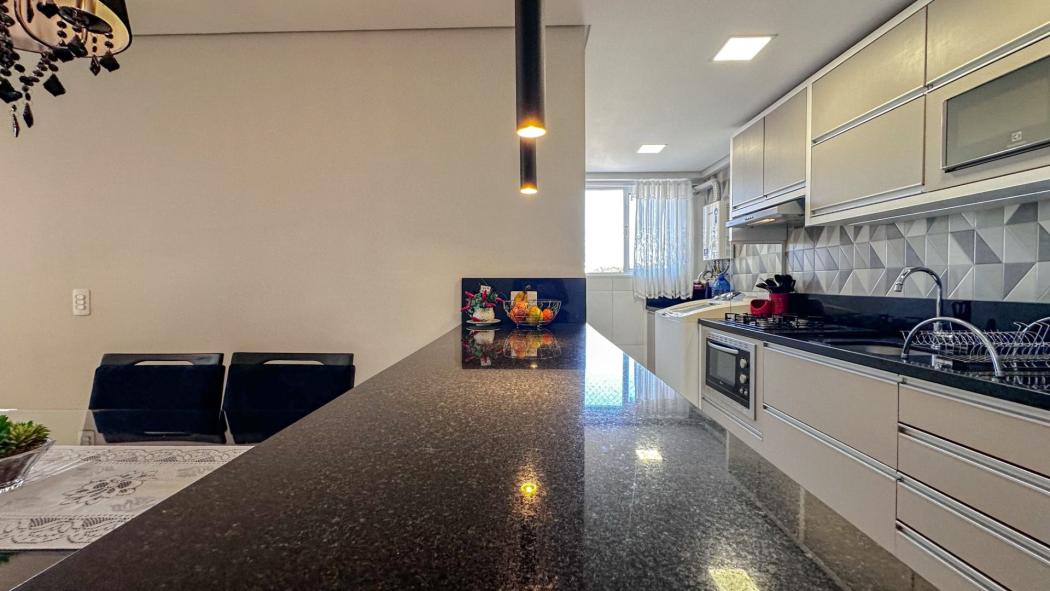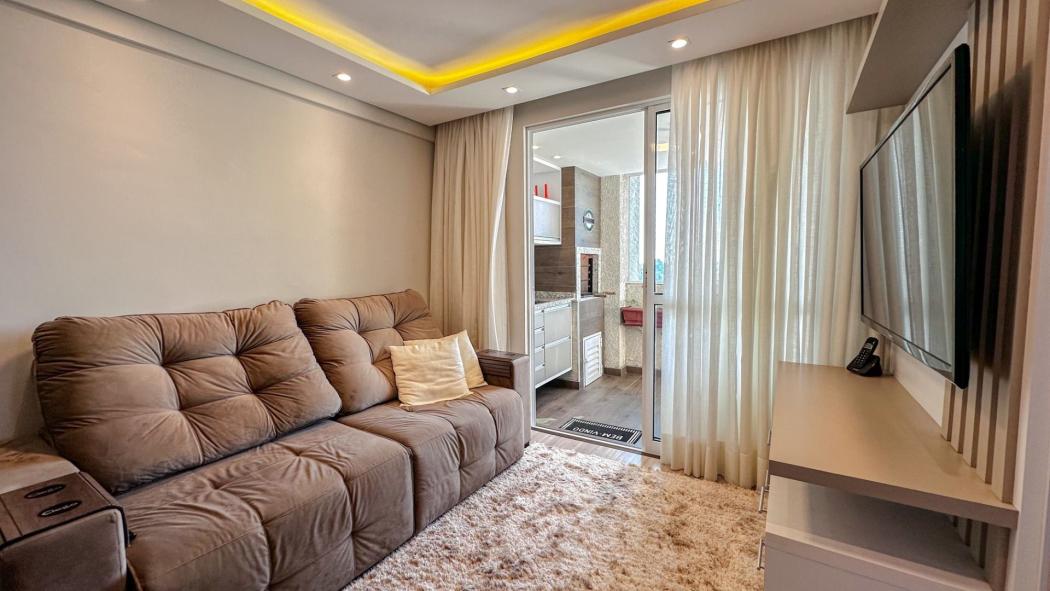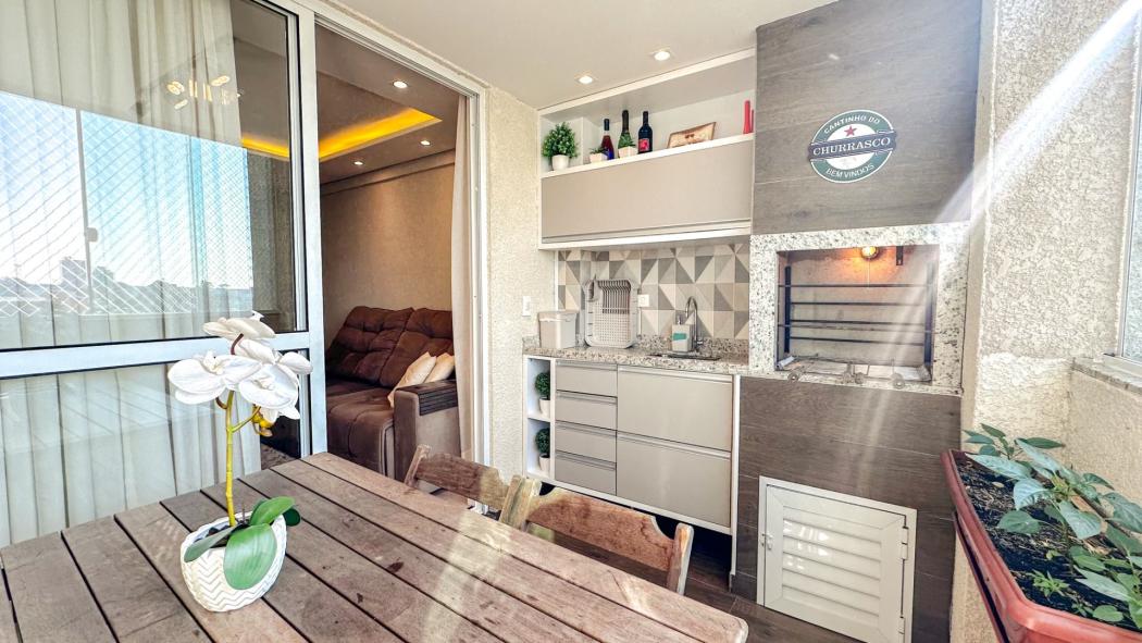 Excelente Apartamento no Novo Mundo, semi mobiliado com móveis planejados em todos os ambientes, amplo espaço gourmet com sacada e churrasqueira, além de um conceito aberto, sendo a cozinha integrada com a sala.