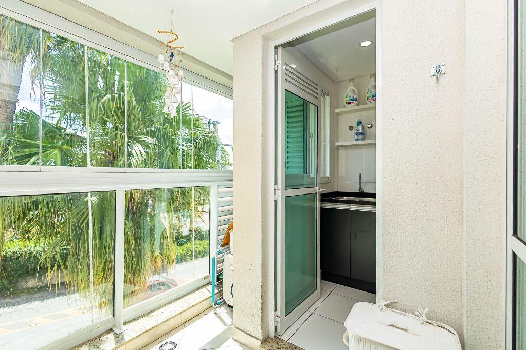 A sacada com churrasqueira a carvão oferece vista livre e sol da tarde, perfeita para momentos de lazer.
