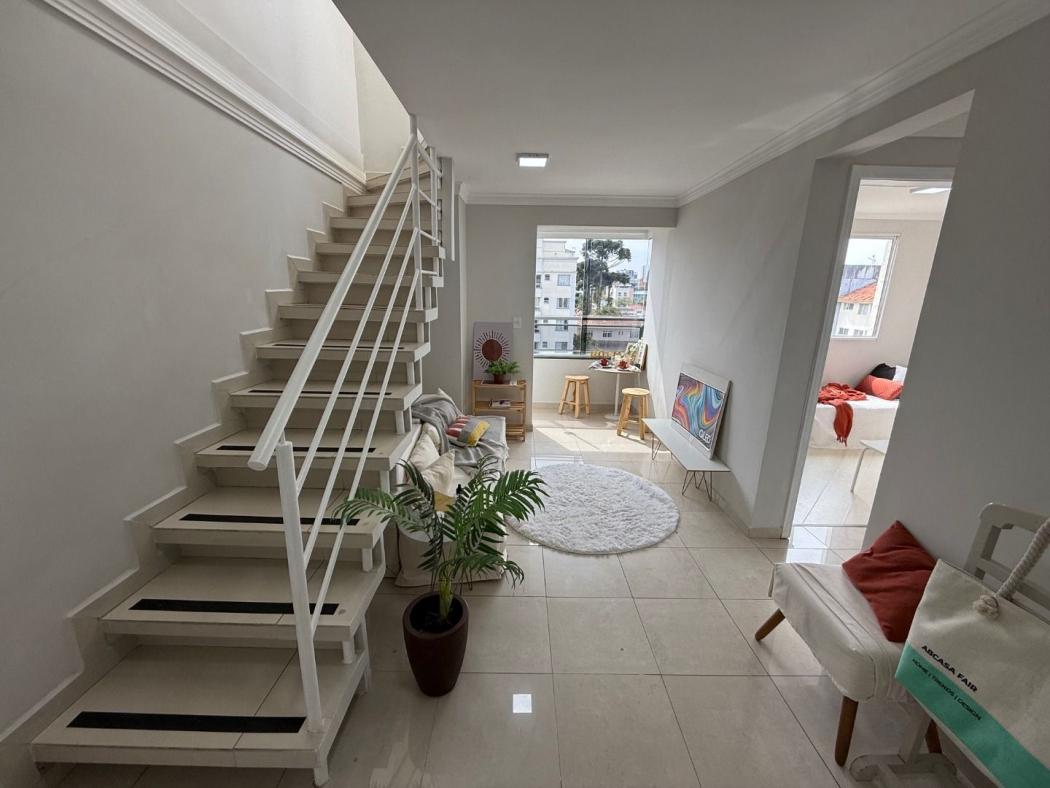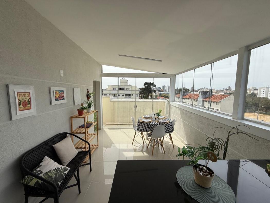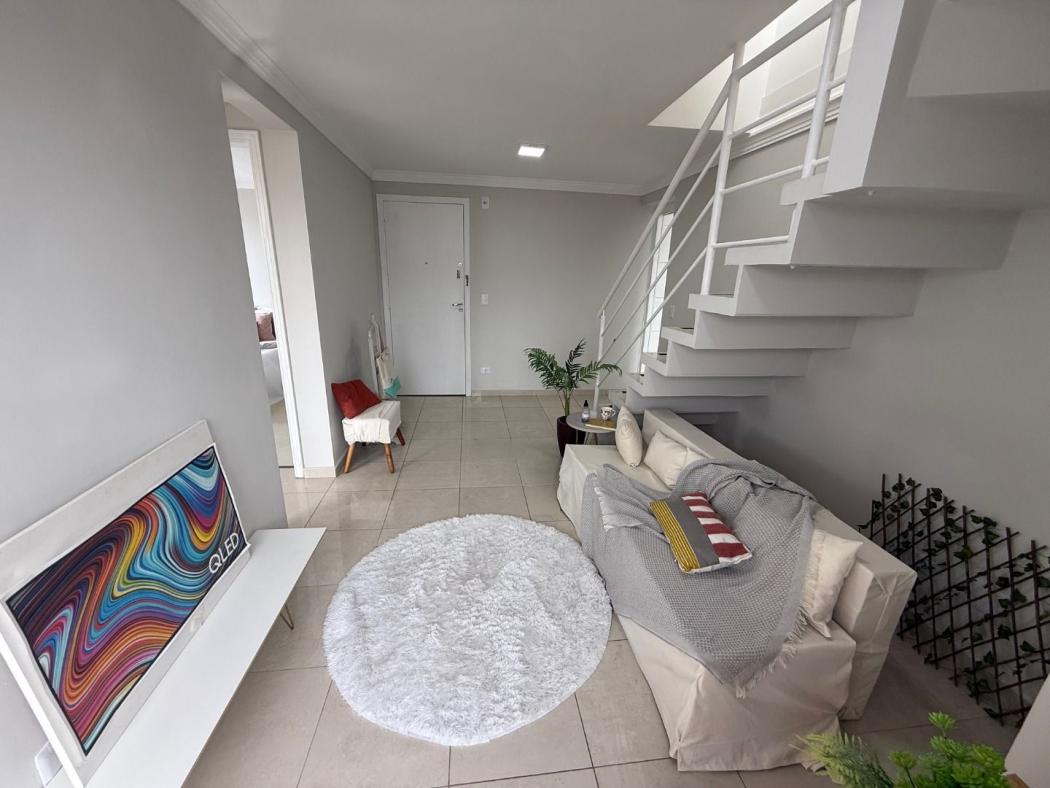 Vendemos belíssima cobertura duplex no bairro Bacacheri, pronta para morar, imóvel desocupado, ensolarada e ventilada, fica próximo ao Base aérea, exército e a todo o comercio em geral, possui 1 vaga de garagem coberta e demarcada. O apartamento fica no 4º andar. NÃO tem elevador Pavimento térreo possui sala com sacada, 2 quartos, banheiro social com pia em granito e box em vidro temperado, cozinha toda com armários com pia e tampo em granito. Pavimento superior possui sala com lavabo, espaço gourmet com pia e tampo em granito com balcão, lavanderia externa coberta e fechada. Obs. Os moveis e itens de decoração não estão incluído no na venda do imóvel. Agende uma visita com um de nossos consultores.