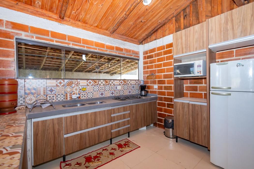 Casa Mista tipo Chalé: Aproximadamente 150m², perfeita para relaxamento e convivência em meio à natureza.