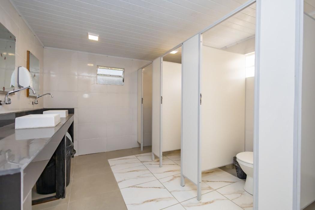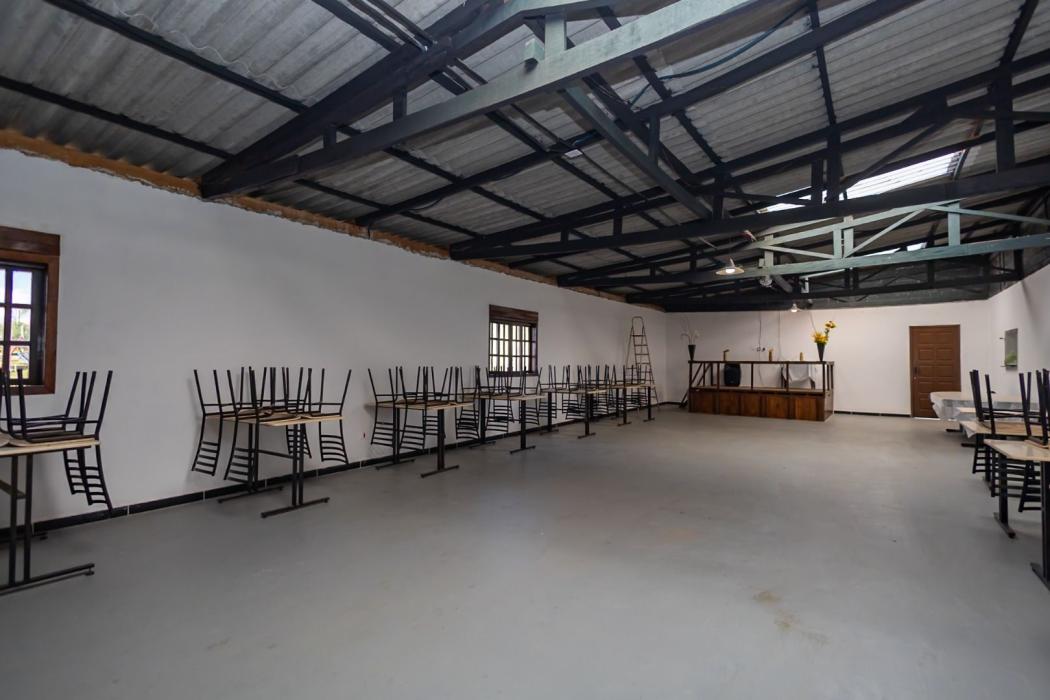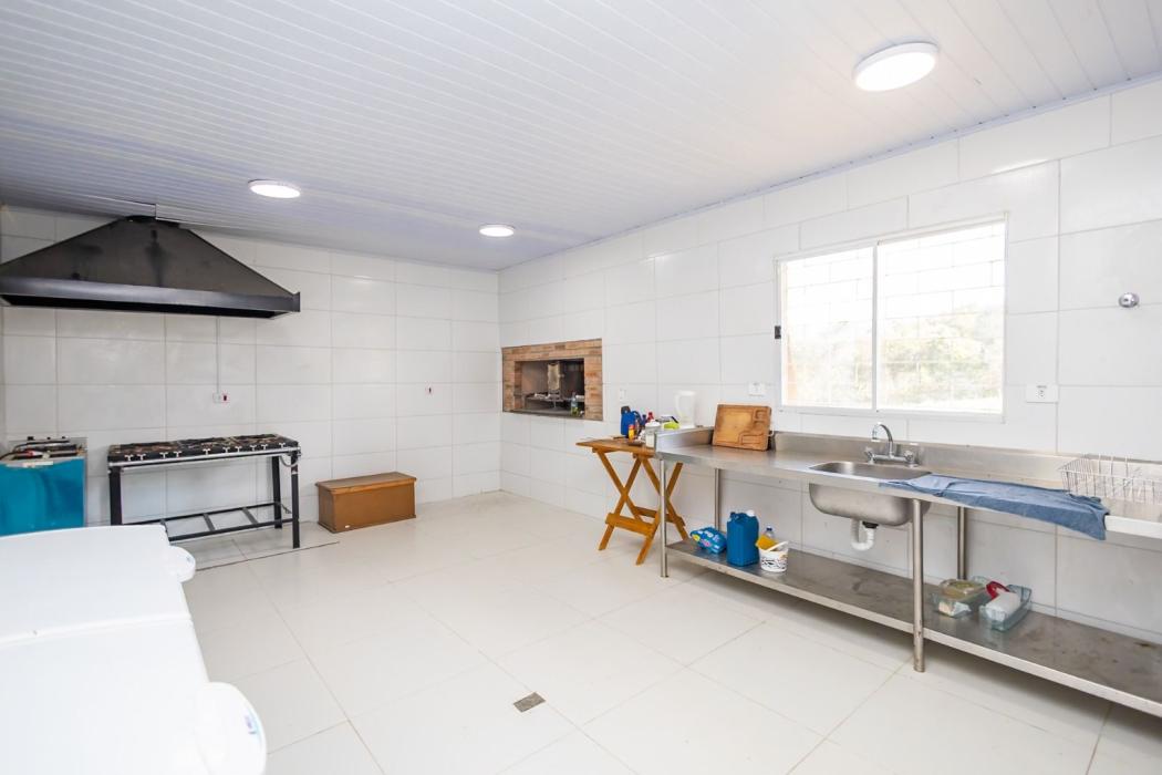 Salão de Eventos de 480m² totalmente equipado, com bar gourmet, cozinha industrial, churrasqueira parrilha, campo de bocha, palco para apresentações e banheiros masculino e feminino. O espaço perfeito para grandes encontros, festas e celebrações.