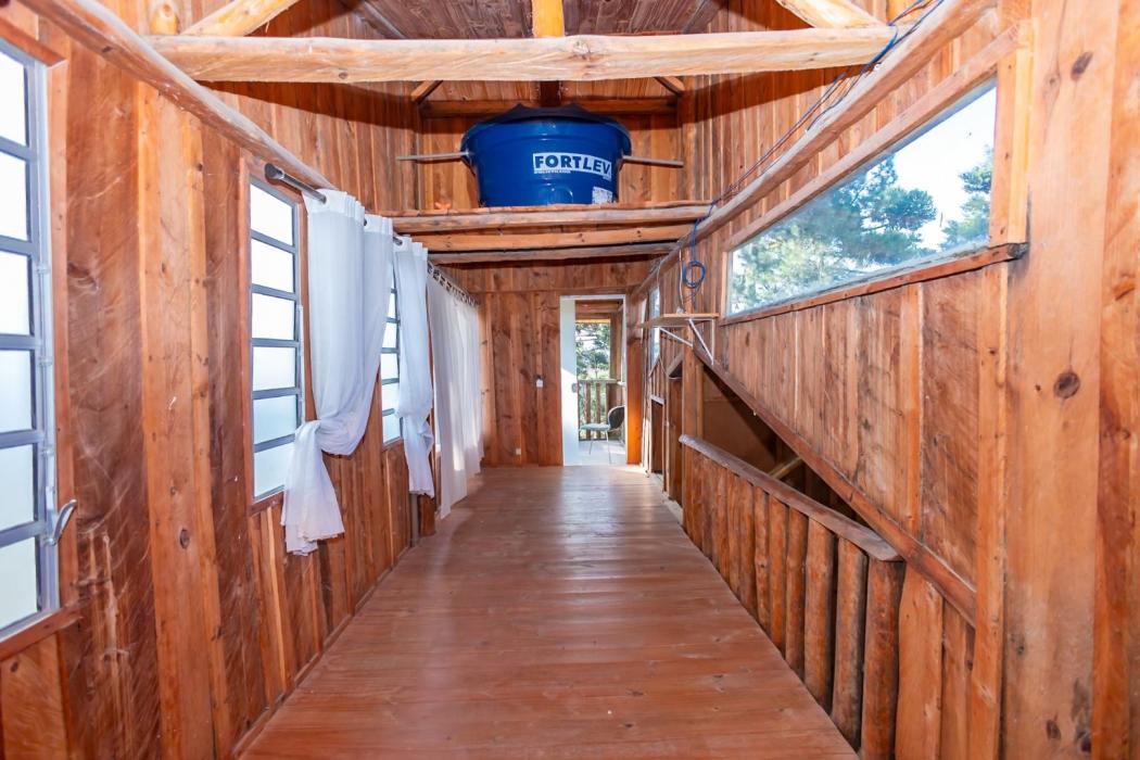 Casa para Caseiro: Confortável casa de madeira de 50m², garantindo privacidade e funcionalidade para a equipe de apoio.