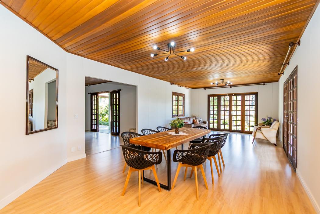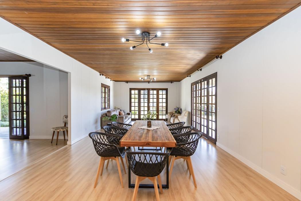 Casa Térrea em condomínio | 5 quartos | 293 m² | 2 vagas cobertas l estacionamento 10 vagas Viver cercado de natureza, paz e tranquilidade! Um imóvel raro, perfeito para quem busca qualidade de vida e, com toda a comodidade de estar perto da capital. Nesta atmosfera única, encontra-se uma charmosa residência térrea que convida ao bem-estar. A casa oferece varanda acolhedora, salas amplas e recém-atualizadas, quatro dormitórios, além de dependência de serviço completa. O lazer é garantido com piscina, quiosque, campo de grama e um jardim secreto que encanta pela beleza. Para quem valoriza contato com a natureza, há espaço de sobra nos 6.779m² de terreno. LOCALIZAÇÃO: O Recanto II é um condomínio tradicional e consolidado de chácaras , onde é possível desfrutar de espaço, privacidade e segurança em meio à natureza, sem abrir mão da proximidade com a cidade. Localizado na Rodovia Deputado João Leopoldo Jacomel, uma extensão da Av. Victor Ferreira do Amaral, este condomínio exclusivo conta com apenas 74 unidades, com terrenos generosos, a poucos minutos de Curitiba. Alguns pontos de referência: - 1km Villa Dei Fiori - 1,4km Associação dos Magistrados do Paraná - 4km Parque das Águas - 6km Carrefour Pinhais - 9km Havan Pinhais - 10km Jockey Plaza Shopping SOBRE O IMÓVEL: - Casa térrea com 293m² construídos - Semi-mobiliada - 5 Dormitórios, sendo 1 suíte - Banheiro social - Banheiro de serviço - Área de serviço - Sala ampla para 02 ambientes - Sala com lareira - Cozinha integrada - Pintura e pisos novos - Churrasqueira interna - Quiosque amplo - Varanda - Garagem coberta - Canil amplo - Espaço destinado à horta e pomar - Piscina com banheiro externo de apoio Anúncio atualizado no dia 29/09/25