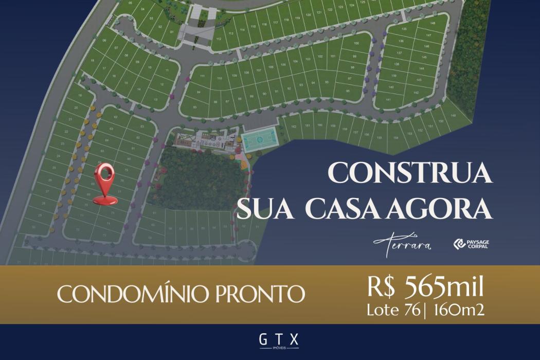 Terreno plano com 160,00m² de área de uso exclusivo, no condomínio Terrara.